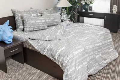 "Ночь нежна" Комплект постельного белья "Графит" 2сп, евро-простыней, 70х70см, перкаль