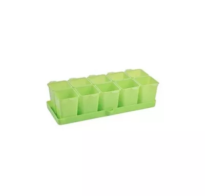 Набор горшков для рассады с поддоном "Flora" 10шт, 36,4х16,9х9,43см, цв.салатовый