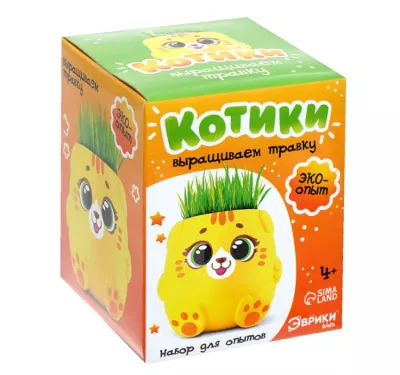 Набор для опытов "Котики. Выращиваем травку" цв.желтый