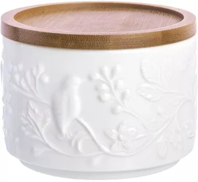 Банка для хранения "Аргайл" 1,1л с деревянной крышкой, цв.белый