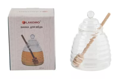 Банка для меда,варенья с ложкой 450мл, h=13см, в п.у.