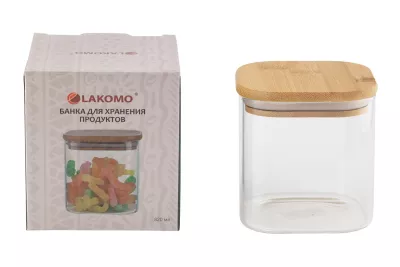 Банка для хранения дерев. крышка 620мл, h=12см, квадратная в п.у.