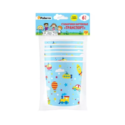 "Транспорт" Набор бум.стаканов 6шт. 250мл