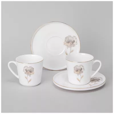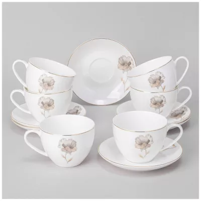 Чайный набор "Золотой цветок" 12пр, 260мл, цв.белый