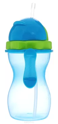 "BAMBINI" Детская бутылочка с трубочкой 300мл цв.синий