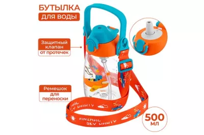 Бутылка для воды "Самолет" 500мл, цв.оранжевый