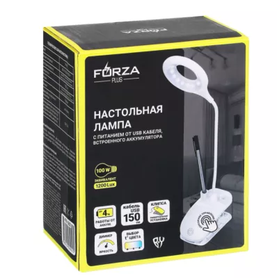 "FORZA" Лампа настольная с зажимом USB 16 LED 1200Lux