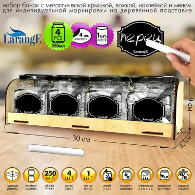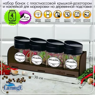 Набор банок для хранения специй 250мл, на подставке, цв.черный