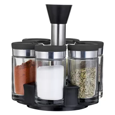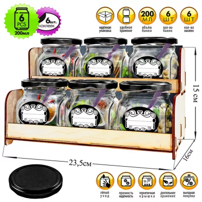 Набор банок для хранения специй 200мл с ложкой, кр.металл, на подставке, цв.черный