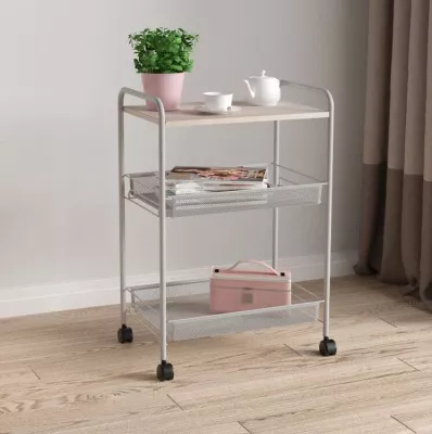 Этажерка на колесиках "Ладья 33КС" со столиком под дерево 45х30х65см, 3 полки, цв.серый