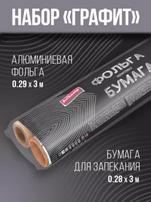 "AVIKOMP" Набор "Графит" фольга алюминиевая 29смх3м, бумага для запекания 28смх3м