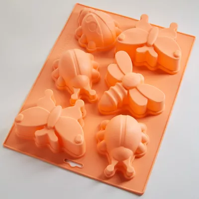 Форма для выпечки 6 кексов "Насекомые" 28х21х4см, цв.персиковый