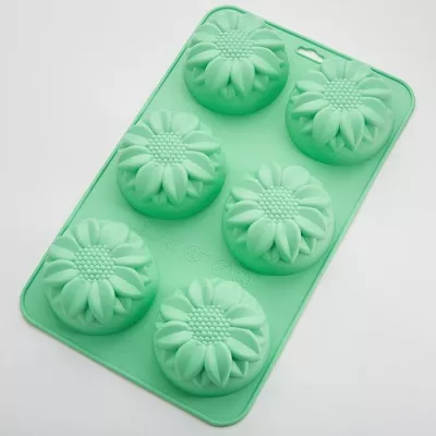 Форма для выпечки 6 кексов "Подсолнухи" 28х17см., цв. зеленый