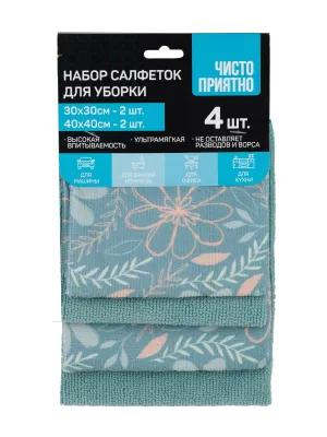 Набор салфеток для уборки "Flower" 4шт, 30х30см, 40х40см