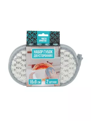 Набор губок двусторонних 2шт, 16х9х1,5см, цв.серый, синий
