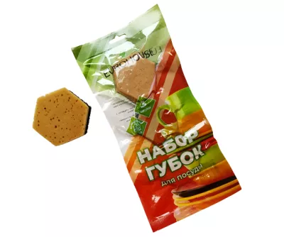 "EuroHouse" Набор губок для посуды в вакуумной упаковке "Шестигранник" 3шт, 9х7,7х3см