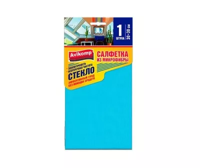 "AVIKOMP" Салфетка из микрофибры "СТЕКЛО" 30х30см, цв.голубой