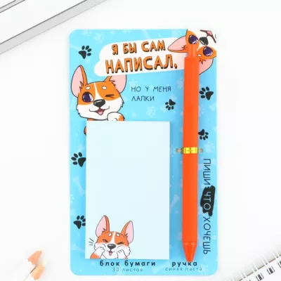 Набор канцелярский "Я бы сам написал, но у меня лапки": ручка,блок бумаги