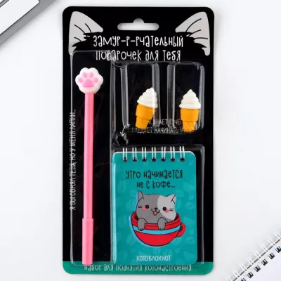 Набор канцелярский "У меня лапки": ручка,ластик 2шт,блокнот