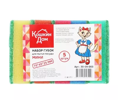 "Кошкин Дом" Набор губок для посуды "Стандарт" 5шт, 7,5х4,5см