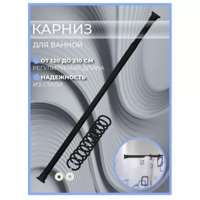 "ZALEL" Карниз для штор "Prima Vanna" 120-210см, цв.черный