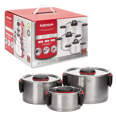"Attribute" Набор кастрюль "Royal" 6пр. (6,2л+3,4л+1,6л)