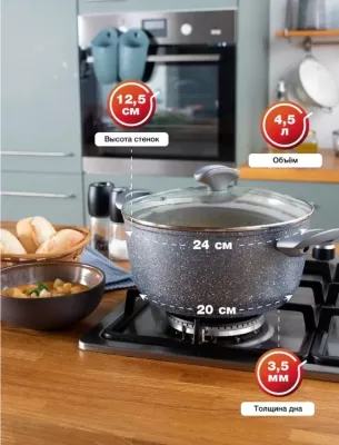 "TVS MINERALIA INDUCTION" Кастрюля со стекл. крышкой 4,5л 24см