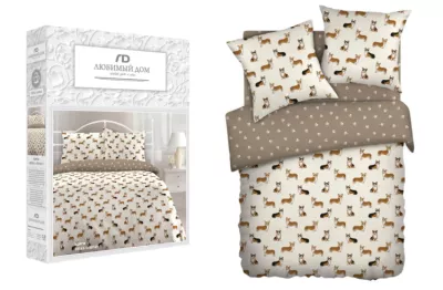 Комплект постельного белья Любимый дом "Корги" 1,5сп, 70х70см, бязь