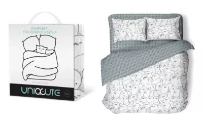 "Uniqcute" Комплект постельного белья "Cats" 1,5сп, 50х70см, цв.черно-белый, поплин