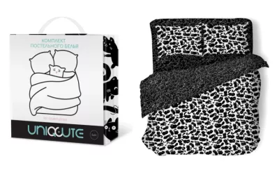 "Uniqcute" Комплект постельного белья "Cats" 1,5сп, 50х70см, цв.черный, поплин