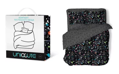 "Uniqcute" Комплект постельного белья "Конфетти" 2сп, 50х70см, цв.черный, поплин