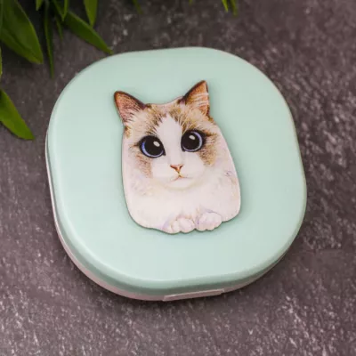 Контейнер для линз "Purebred Cat" 7,5х7,5х2,5см, цв.зеленый