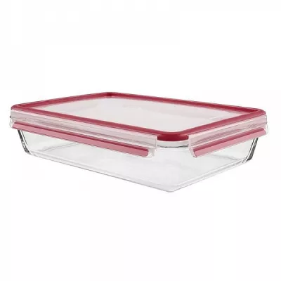 "EMSA" CLIP&CLOSE GLASS" Контейнер стекло прям. 1,3л, цв. малиновый