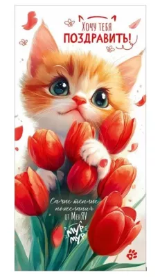 Конверт для денег "Хочу тебя поздравить!...Мур-мур"
