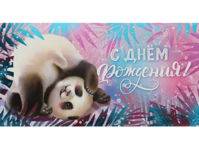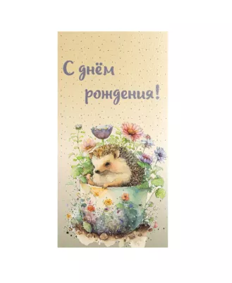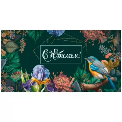 Конверт для денег "С Юбилеем! Цветы и птица на зеленом."