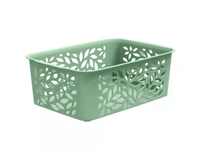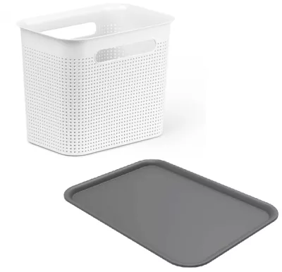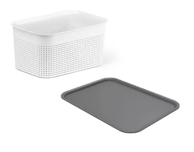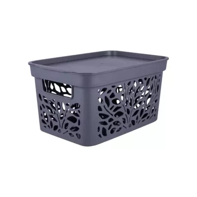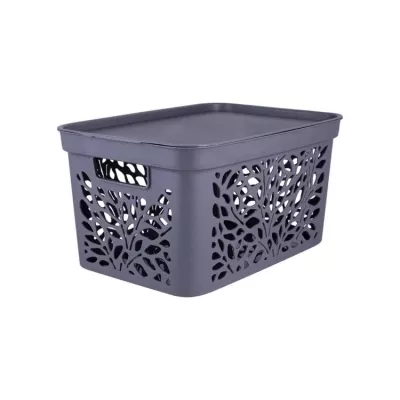 "Leaves" Корзина для хранения с крышкой 10л, 33,3х22,5х17,4см, цв.серый