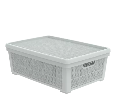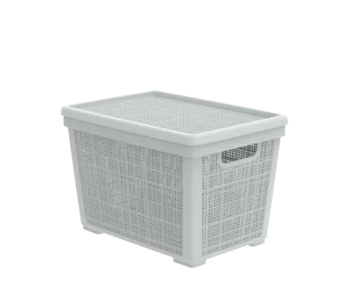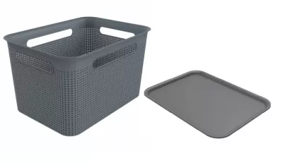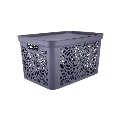 "Leaves" Корзина для хранения с крышкой 18л, 40,5х27,5х20,7см, цв.серый