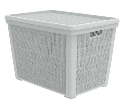 "Leaves" Корзина для хранения с крышкой 30л, 46,3х32,6х25,6см, цв.серый