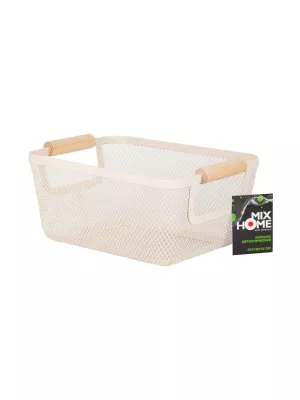 Корзина металлическая с деревянными ручками 25х18х13см, цв.молочный