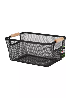 Корзина металлическая с деревянными ручками 33х21х14см, цв.черный