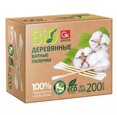 "GRIFON" Набор ватных палочек на деревянной основе 200шт.