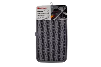 Коврик для сушки посуды, силиконовый 41,7х24,7х0,45см, цв.серый