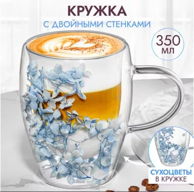 Кружка "Crystal glass.Сухоцветы" с двойными стенками 350мл