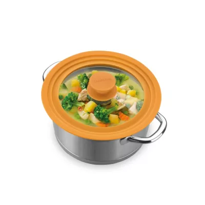 "UNICOVER" Крышка стеклянная жаропрочная с силикон. ободком 16-18-20см, низкая, цв.горчичный