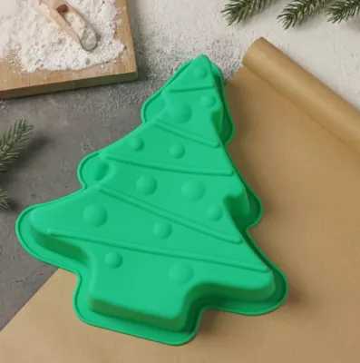 Форма для выпечки "Ёлочка с гирляндой" 27х25см, цв.зеленый