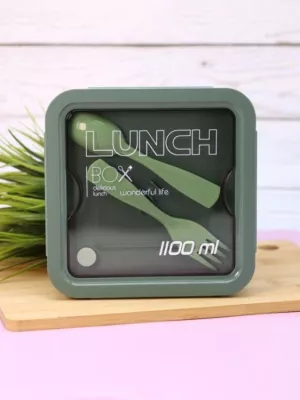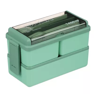 Ланч-бокс 1,4л со столовыми приборами, цв.зеленый