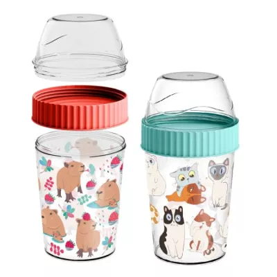 "IZI-GO" Контейнер для завтрака с декором 0,44л, цв.микс