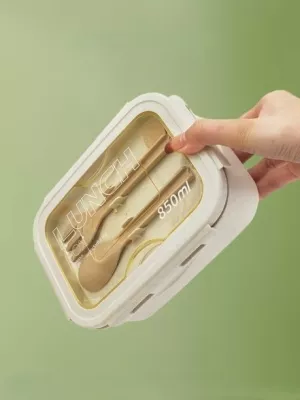 Ланч-бокс "Enjoy your meal" 800мл со столовыми приборами, 13х18,3х6,8см, цв.бежевый