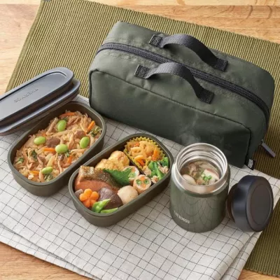 "Арктика" Ланч-бокс 2 уровня 0,8л, 0,55л, со столовыми приборыми, цв.зеленый, бежевый