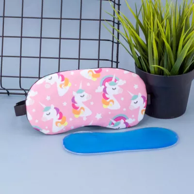 Маска для сна "Many unicorn" 9х19см с охлаждающим гелем, цв.розовый